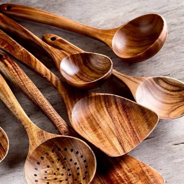 Acacia Wood Kitchen Utensil Cooking Spoons Spatulas Ladles Eco Friendly Nonstick Cookware Tools Handmade Durable