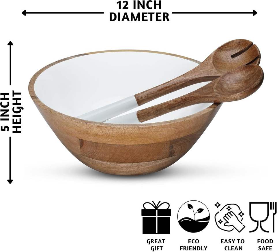 Acacia Wood Large Bowls and Spoons Set Food-Safe for Home & Party Wooden Salad Tools by HF CRAFTS