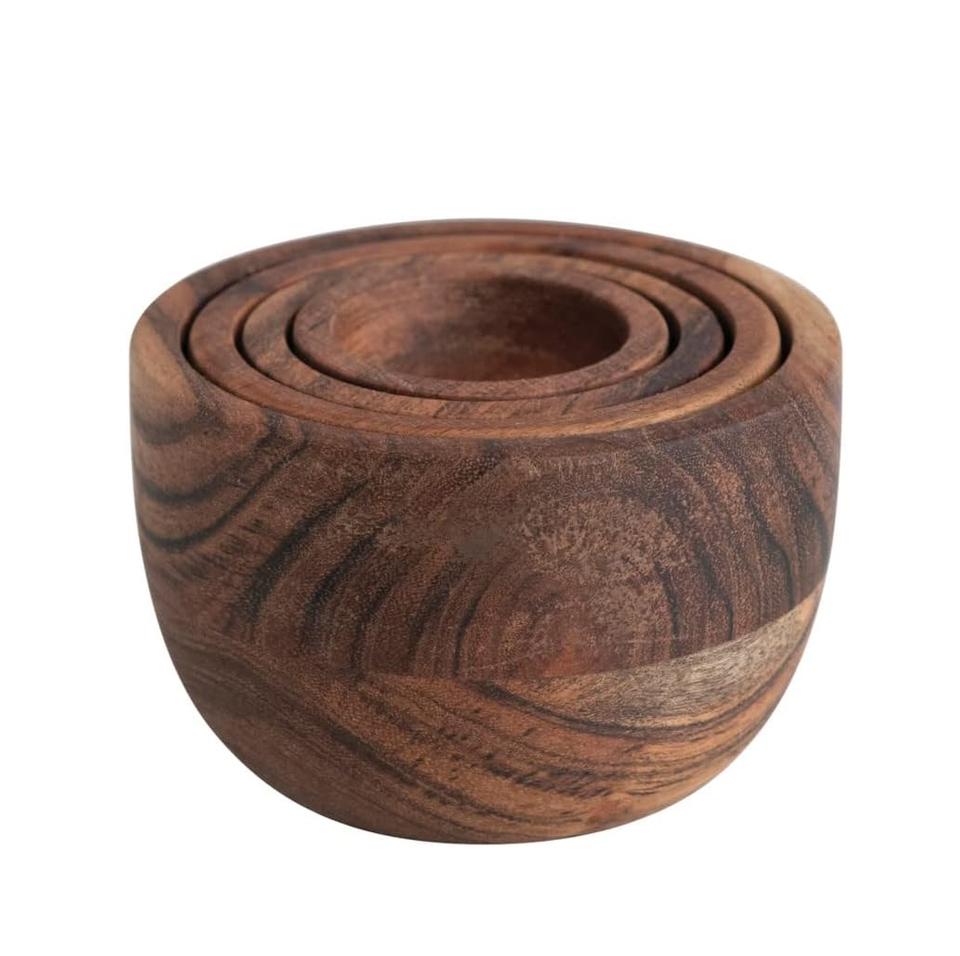 Acacia Wood Nesting Espresso Bowl Natural Farmhouse Decor Pedestal Decorative Bowl for Table 12" Large Fruit Bowl Wood
