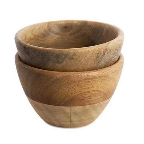 Acacia Wood Polished 7-Inch Small Serving Bowl Set Natural Kitchen Dinnerware Salad Soup Cereal Fruit Handcrafted Modern Luxury