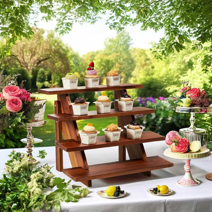 Acacia Wood Portable Display Stand Rectangle-shaped Cupcake Dessert Stand for Buffet Storage Decorative Purpose Cake Tools