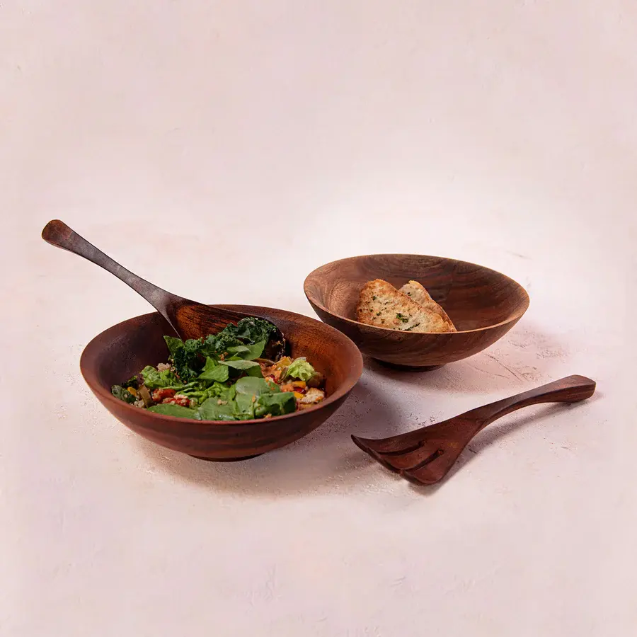 Handmade Acacia Wood Salad Bowl with Serving Utensils Versatile Wooden Bowls for Salad Fruit Pasta or Snacks