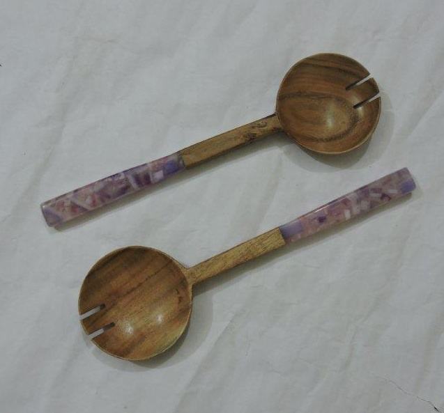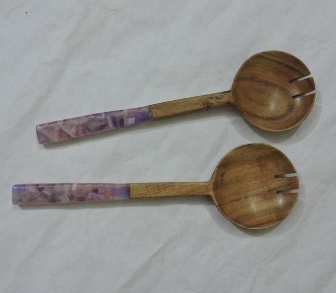 Acacia Wood Salad Server with Colorful Resin Handle Stylish Home Kitchen Dining Tools