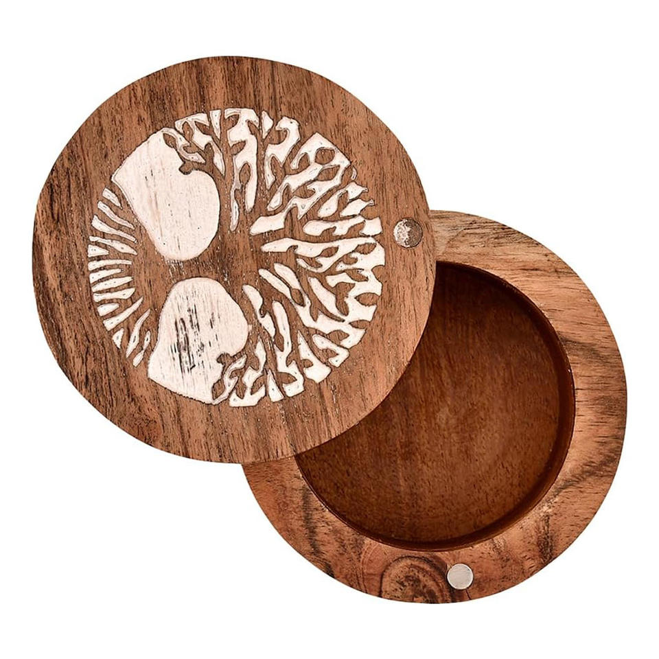Acacia Wood Salt Cellar Bowl Kitchen Storage Container Holder with Lid for Pepper Spice Life of Tree Carved Decorative Wood Box