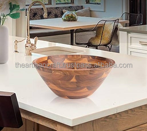 Handcrafted Wood Salad Bowl Large Natural Wooden Bowl for Serving or Mixing Elegant Kitchen and Dining Tableware Rustic Home
