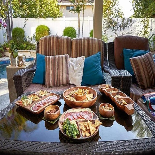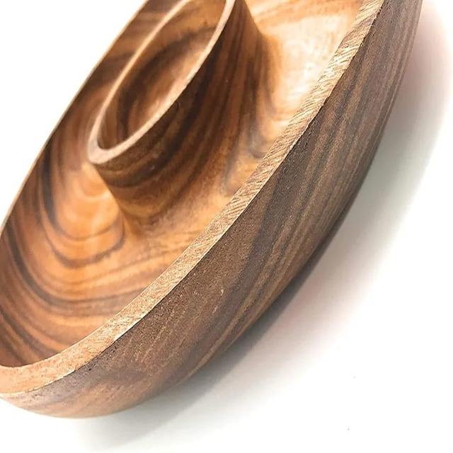 Acacia Wood Specialty Salsa Bowl Plate Tray 10' D x 1.5" Thick Chip and Dip Dish in Brown Dinnerware