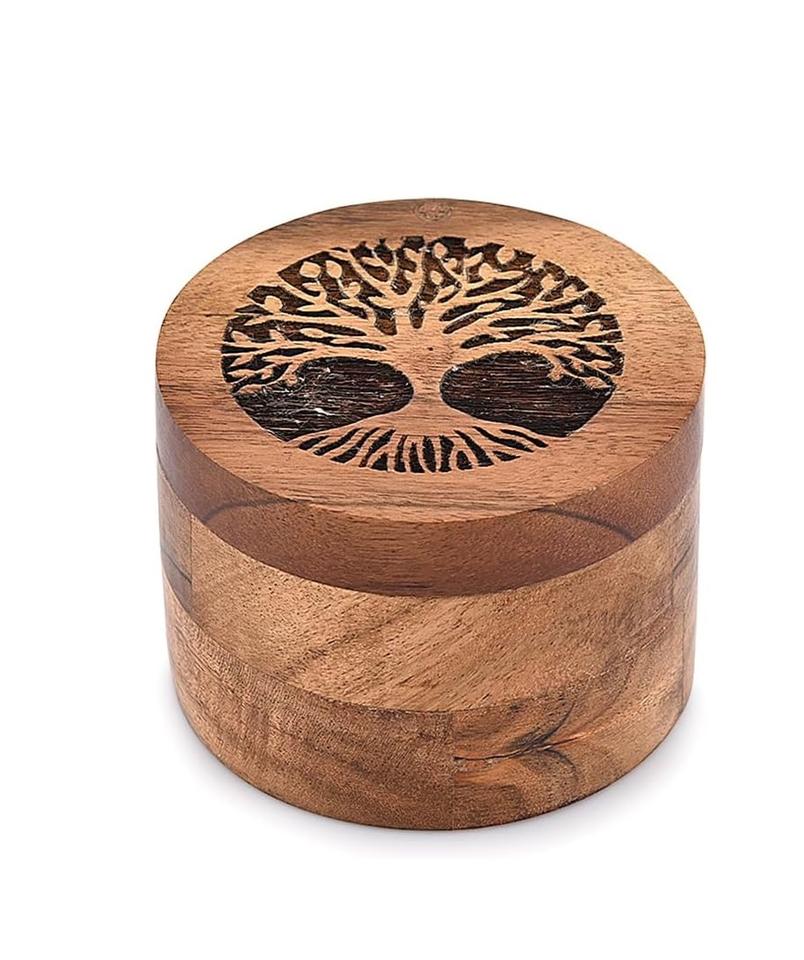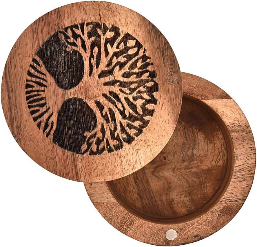 Acacia Wood Spice Cellars Box with Lid for Kitchen, Countertop, Round Storage Box for Spices (3.5" X 3.5" X 2.5")