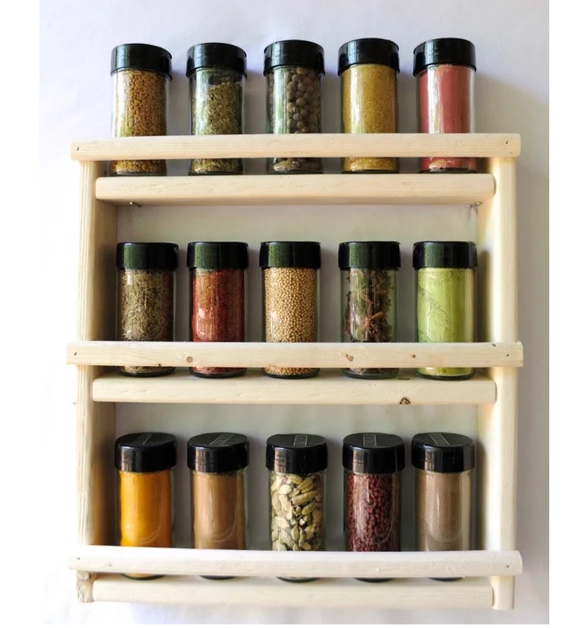 Acacia Wood Spice Jar Rack Self-adhesive Kitchen Storage Rack Organizer Shelf for Spices Best Sale