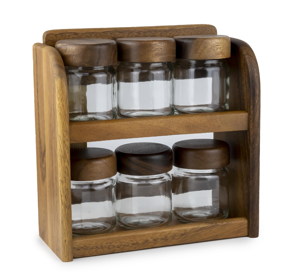 Acacia Wood Spice Jar Rack Wholesale High Quality Handicrafts Wood Spices Rack Handmade Shelf Crafts