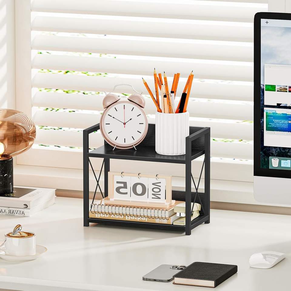 Acacia Wood Spice Rack with Metal Frame Bamboo Countertop Display Kitchen Storage Organizer Cover-Style Jar Bottle Drawer Shelf