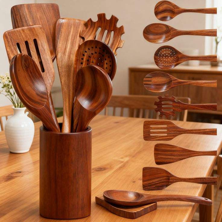 Acacia Wood Spoon Stand Totally Utensil Salad Server & Serving Spoon Kitchen for Hotels Homes Restaurants