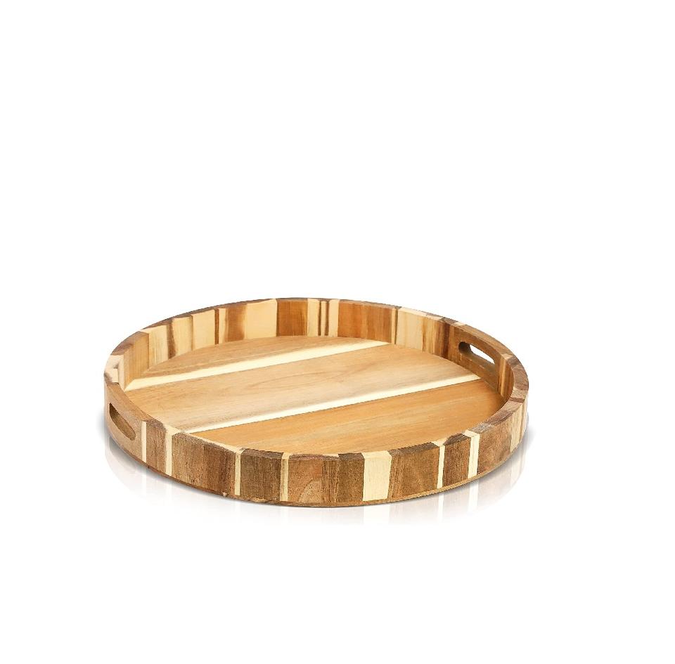 Acacia Wood Tray Household Wooden Chinese Tea Tray Restaurant Baking Fruit Cakes Solid metal handle Tray