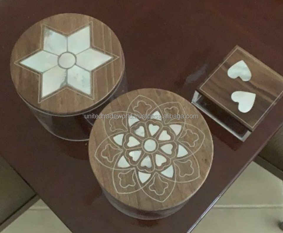 Mother of pearl wood Acrylic Jar tray set