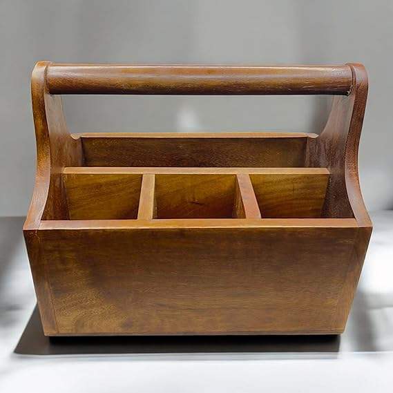 Acacia Wood Utensil Holder Flatware Utensil Caddy Tray Holder for Spoons Knives Forks Kitchen Foldable As Photo at cheap price