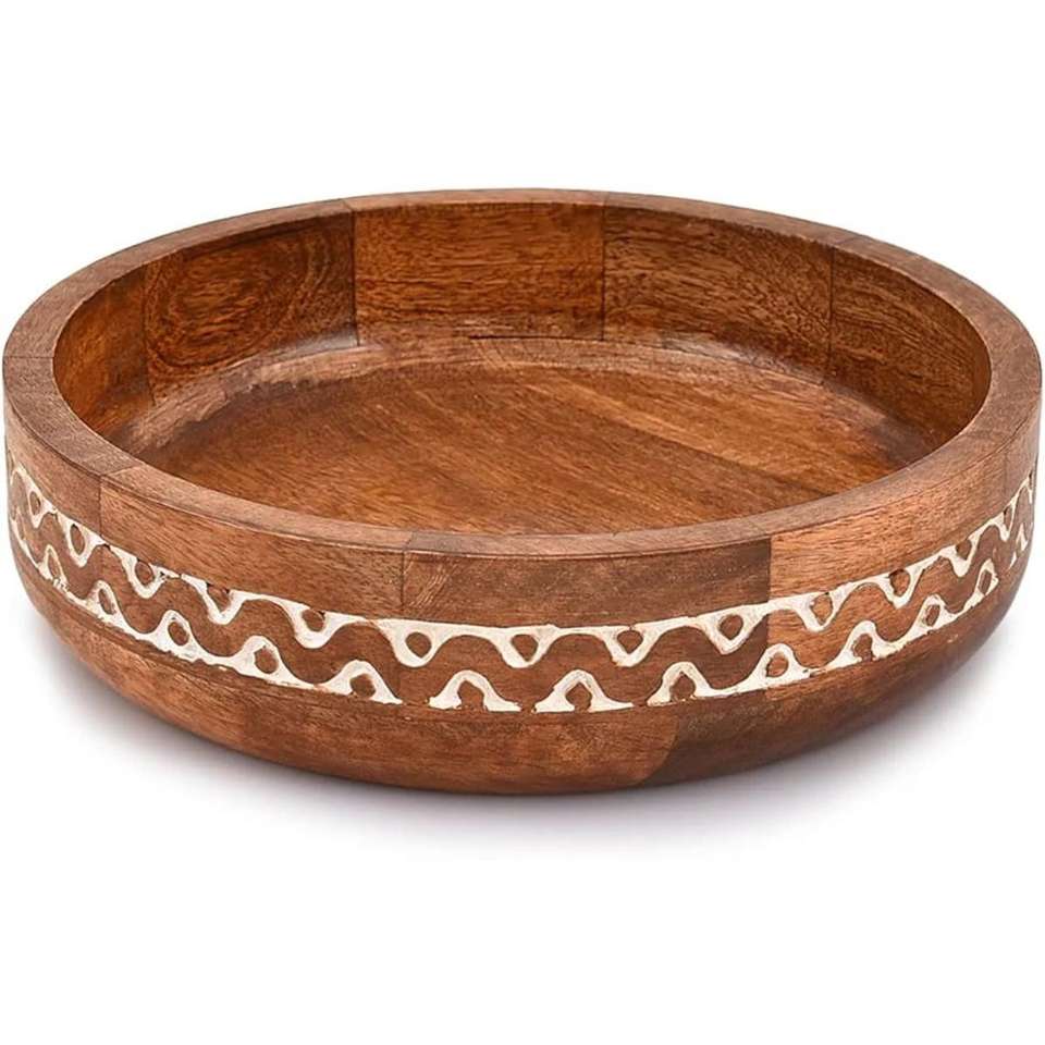 Acacia Wood Vintage Eco-Friendly Handmade Decorative Serving Bowls Natural Crafts Salad Pasta Bowl Party Hotel Restaurant Supply