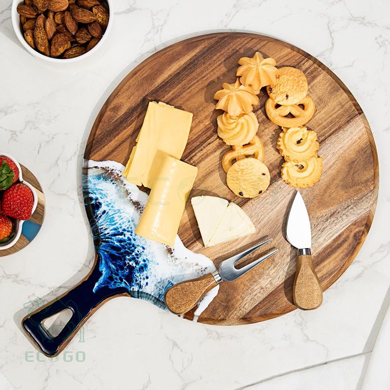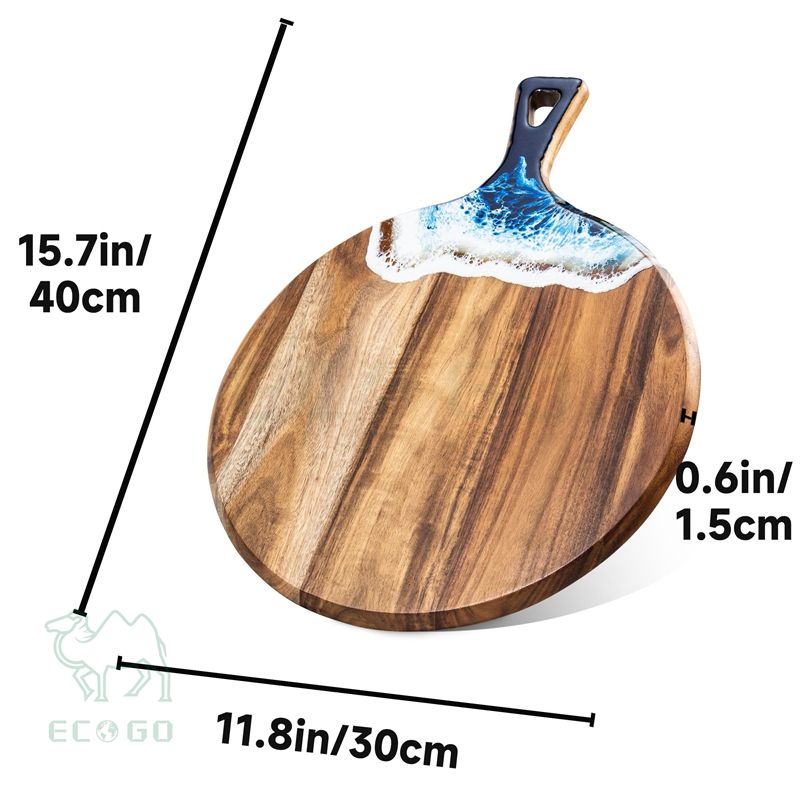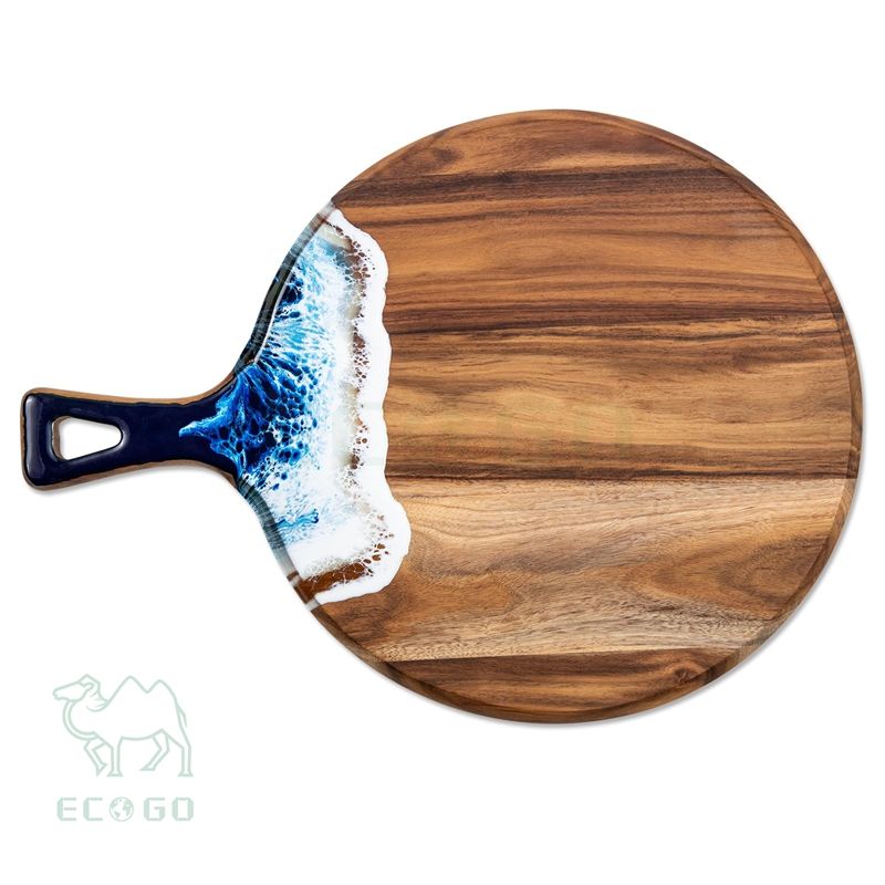 Acacia Wood and Resin Cutting Board with Handle Chopping Board Round Paddle Cutting Board for Meat Bread