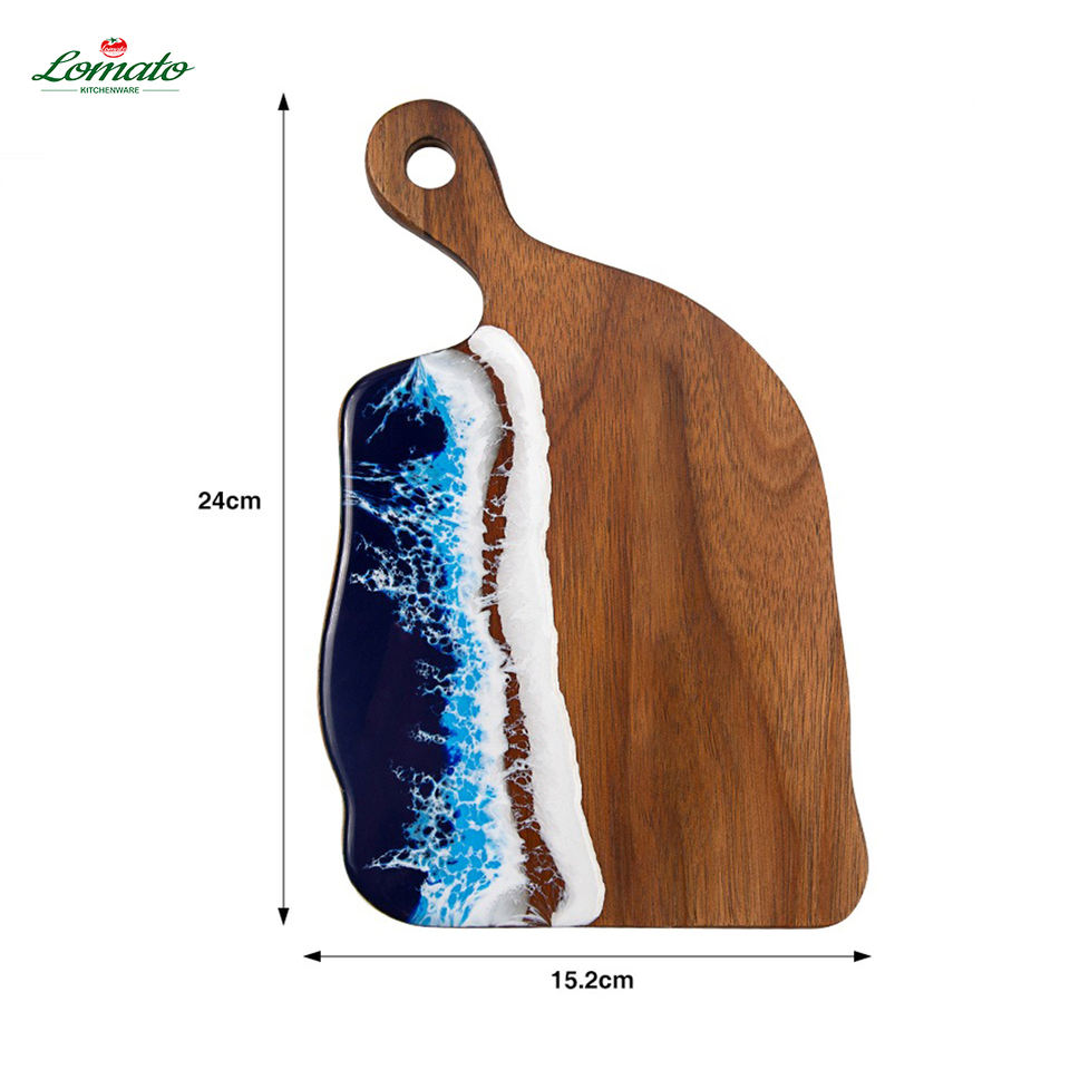 Acacia Wood and Resin Epoxy Charcuterie Cutting Board Wooden Ocean-Theme Chopping Board Cheese pizza serving tray with handle