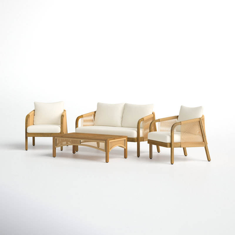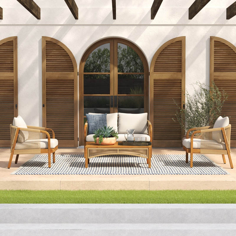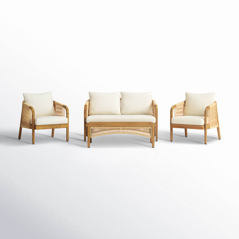 Acacia Wood and Wicker Outdoor Lounge Seating Group with Cushions Garden Sets