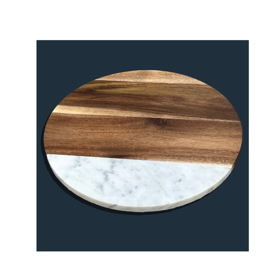 Acacia Wood with White Marble Lazy Susan Serving Tray Rotating Serving Tray Display Turntable Cheese hot sale