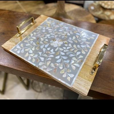 Acacia Wooden Serving Trays with Handles for Eating Decorative Ottoman or Coffee Table Accessory Large Wood Bed Tray