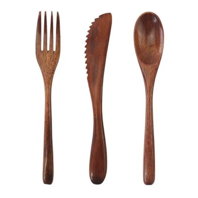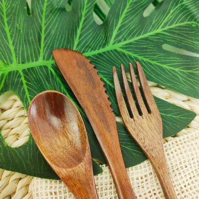 Acacia Wooden Spoon Fork Knife Cutlery Set Reusable EcoFriendly Dinnerware Tableware Kit Travel Utensils Portable Safe NonToxic