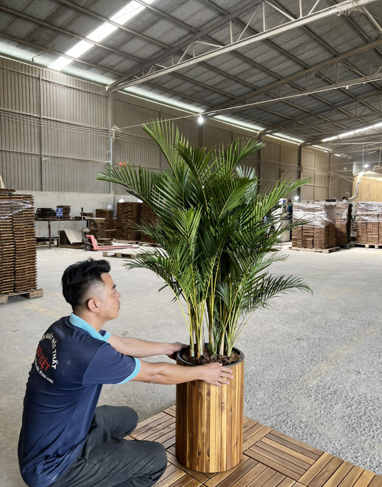 Acacia Wood Planter Pot Hardwood with Inner Plastic Pot Waterproof Indoor Outdoor From VietWood