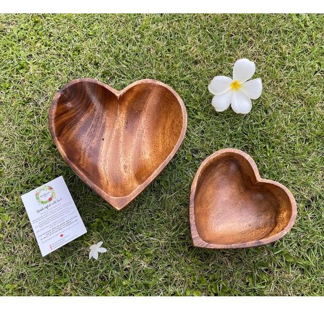 Handmade Acacia Wood Heart-Shaped Bowl for Serving Unique Wooden Design
