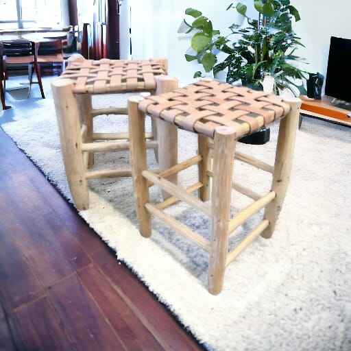 Accent Small Square Rattan Chair with Wood Ottoman Bone Inlay Console for Kitchen Makeup Desk Living Room Entry Outdoor Use