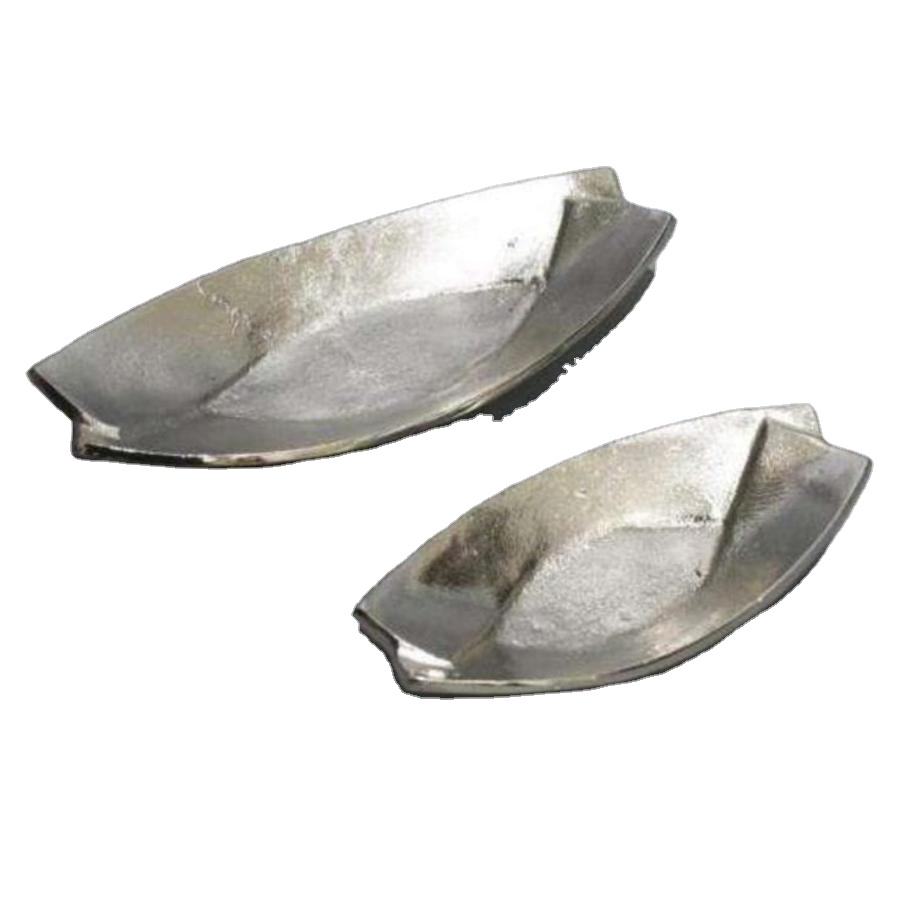 Accent Trays Set of 2 Cast Aluminium Food Grade Hotels Serving Dish And Bowls Dryfruits Snacks Platter Reusable Bowls Silver