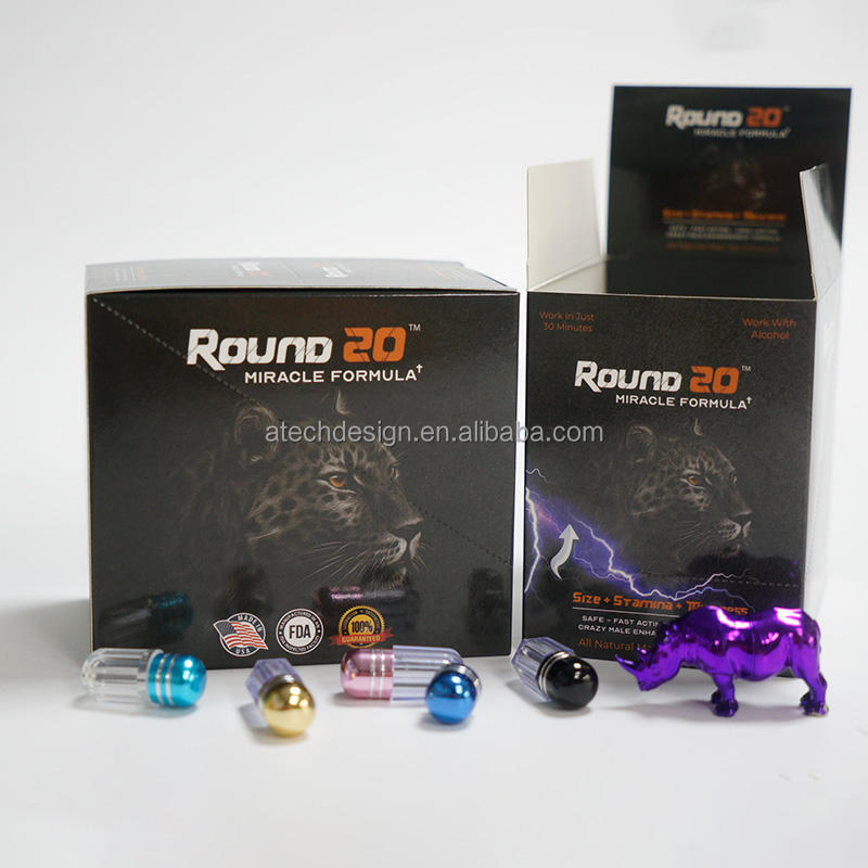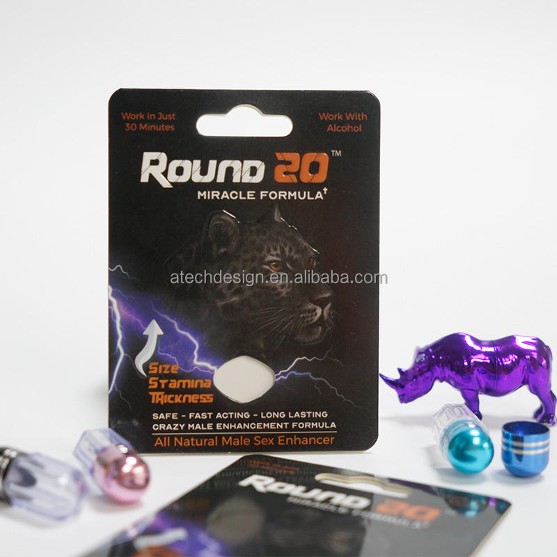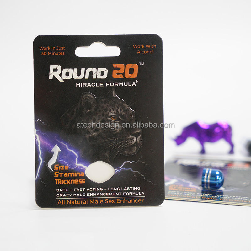 Accept Custom Design Men Enhancement Pills Packaging Rhino Round 20 Pills 3d Blister Card Paper Box Packaging