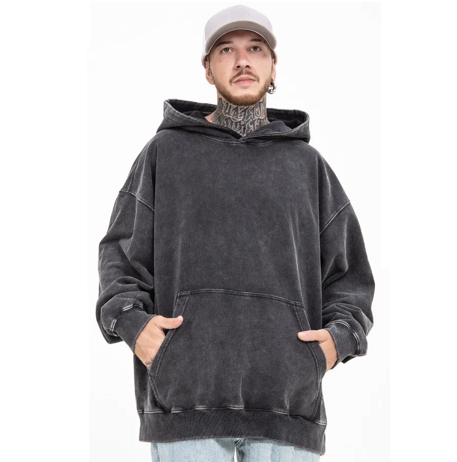 Accept Custom logo Oversized Acid Washed Hoodie with Bottom Vintage Breathable Acid Washed Hoodie Men