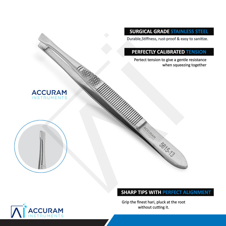 Accuram Slant Tip Eyebrow Tweezers Stainless Steel Professional Facial Hair Removal Personal Makeup Beauty Grooming Tool 11cm