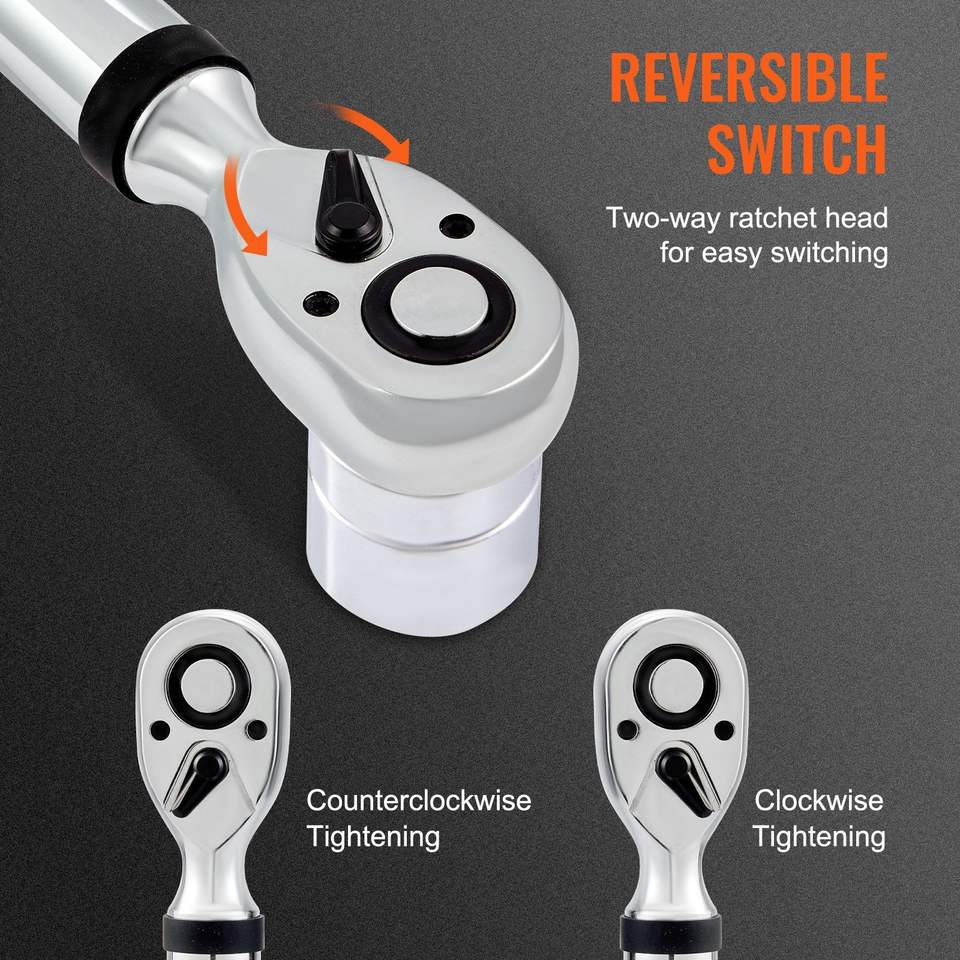 Accurate 3-Mode Adjustable 1/2\" Drive Digital Torque Wrench Kit 25-250ft.lb/34-340n.m Range LED Buzzer Calibration ±2% Torque