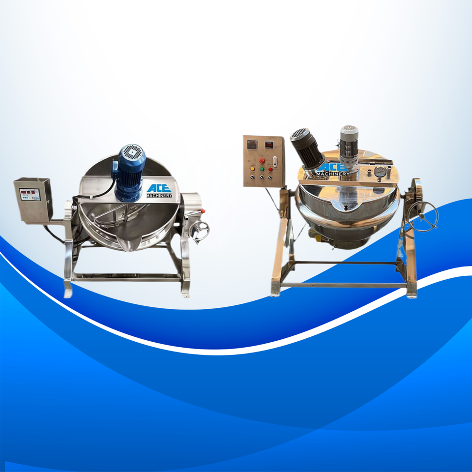 Ace 200L Industrial Vacuum Cooking Horizontal Mixer Electric Cooking Pot Stainless Steel Vacuum Horizontal Frying Pan