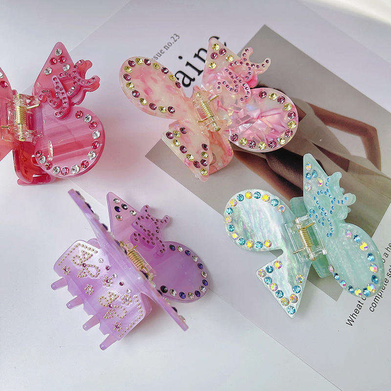 Acetate Rhinestone Bow Medium Nordic Clips Shark Hair Claw 20cm Hollow Sweet Lovely Clamps Clips for Girl Hair Clips for Women