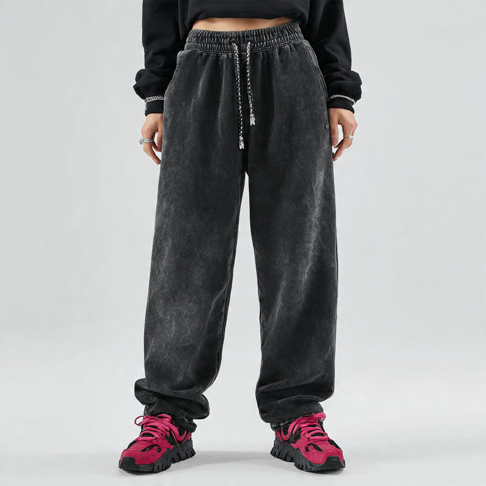 Acid Wash Baggy Jogger Sweatpants Women Heavy Fleece Vintage Washed Trouser Pajama Winter Stone Washed Sweat Pants Ladies