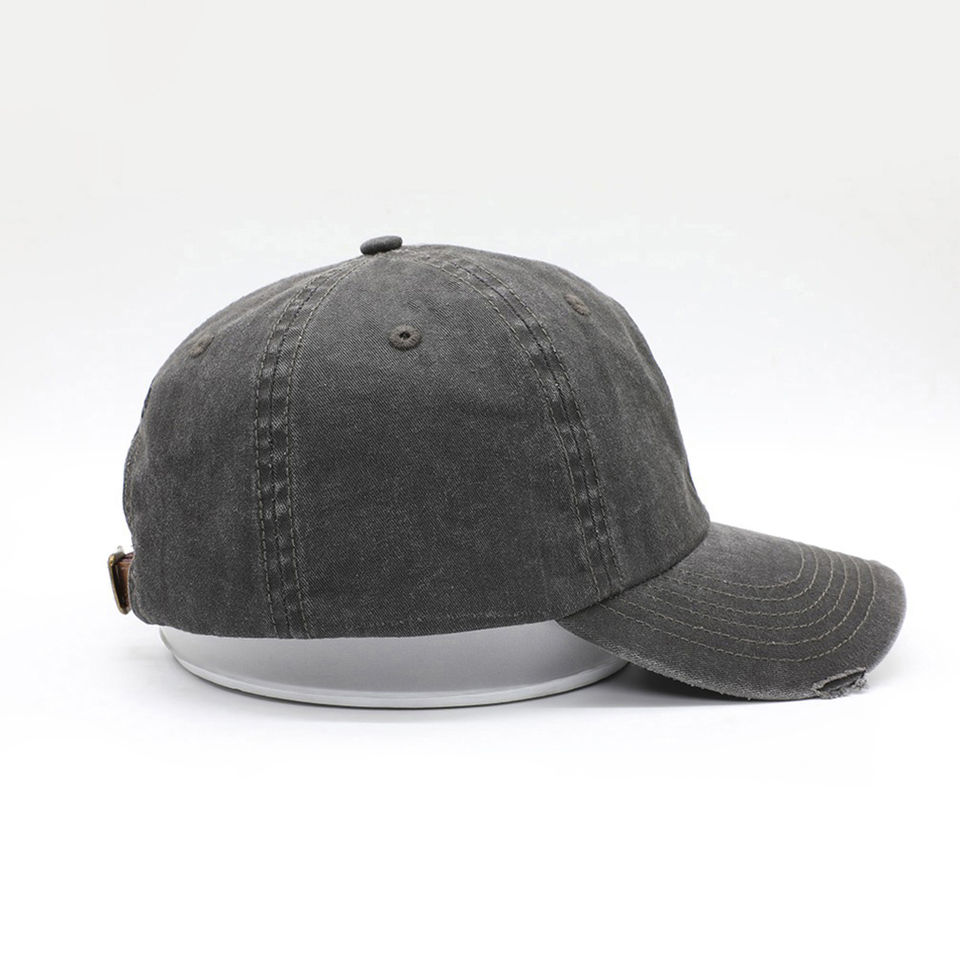 Acid Wash Customized Cotton 2 Tone 6Panel 3D Embroidery Customized Metal Buckle Baseball Cap Custom Logo Distressed Baseball Hat