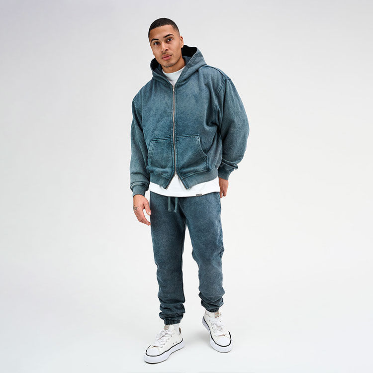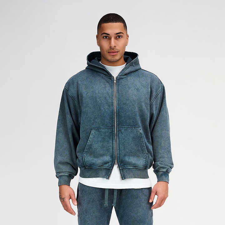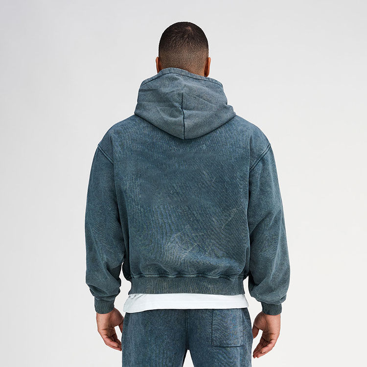 Acid Washed Oversized Embroidered Cropped Hoodies Ripped Black Distressed Applique Boxy Fit Pullover 100% Cotton Men