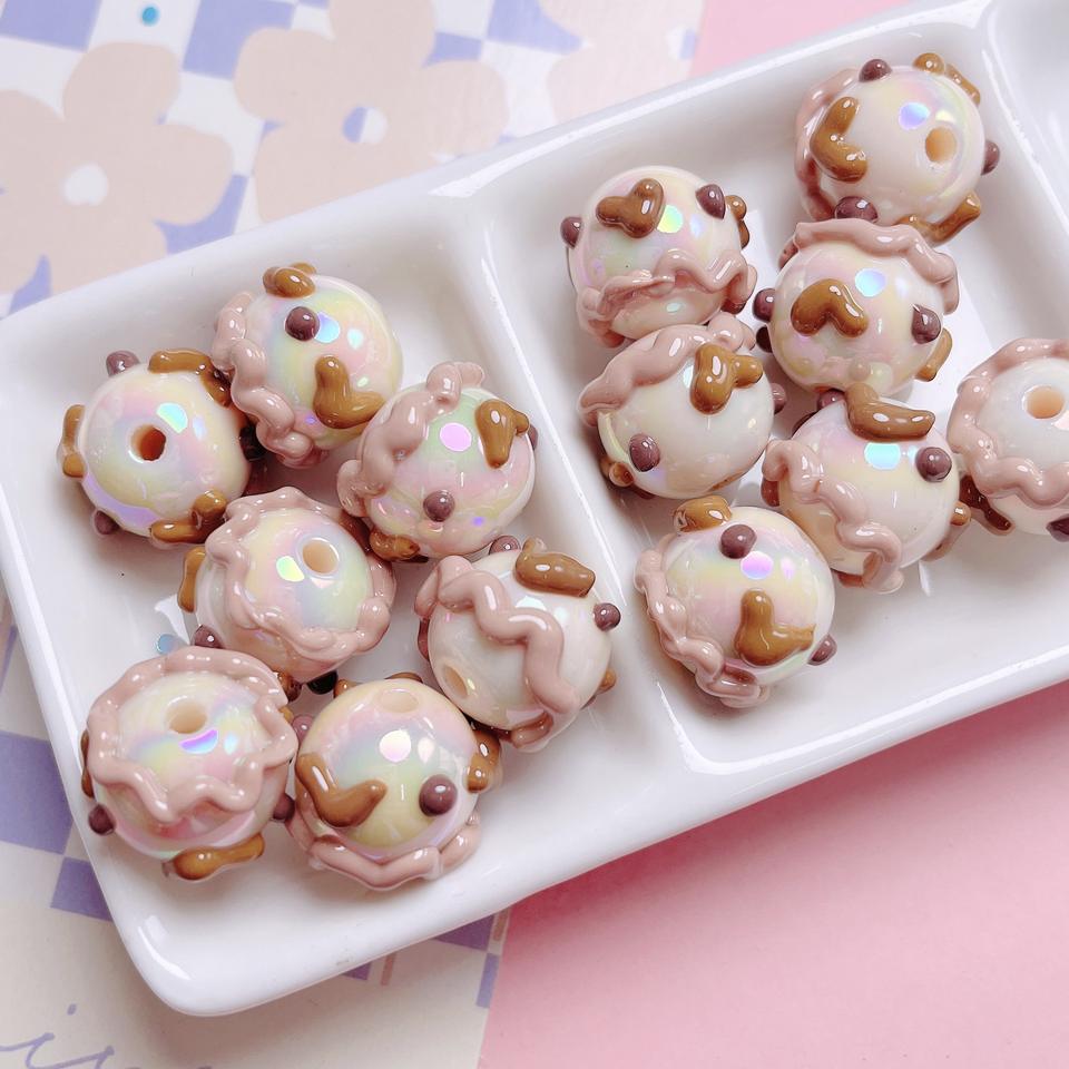 Acrylic 3D Floral Hand-Painted Beads with Straight Holes for DIY Phone Charm Keychain Crafting Jewelry Making Accessories