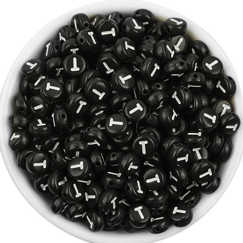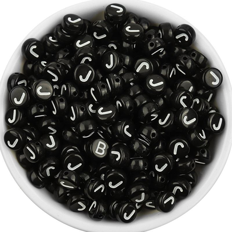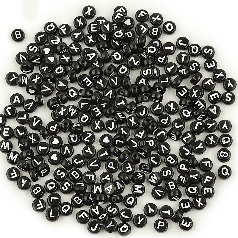 Acrylic Alphabet Letter Beads Black White Love Heart Beads for Diy Jewelry Making