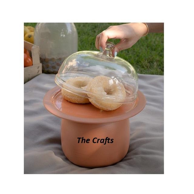 Acrylic And Aluminium Gold Color Chocolate Stand Handmade Round Shape Cake Serving Stand With Glass Cover