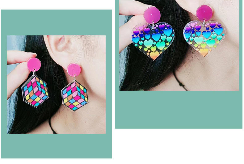 Acrylic Earrings New Geometric Heart-shaped Sweet Rubik's Cube Pendant Earrings for Women Uionen 844