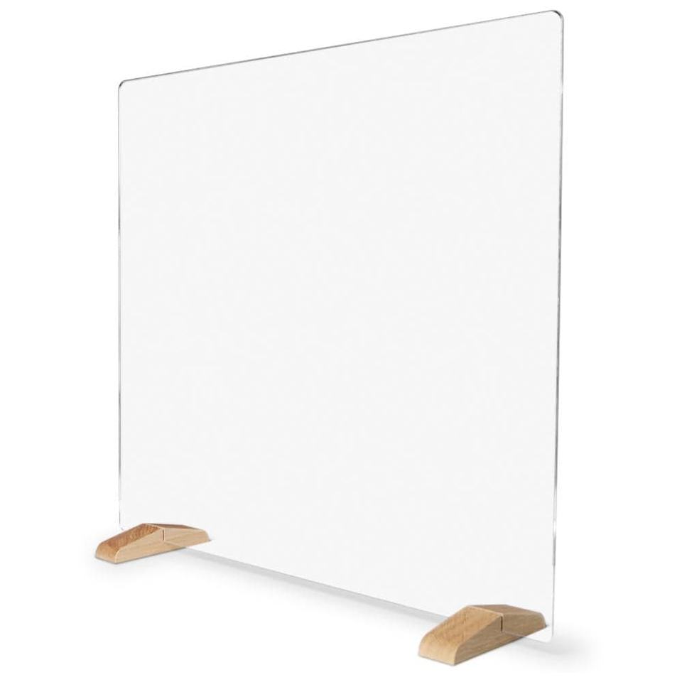 Acrylic Glass Wall Sneeze Guard with Wooden Feet Hygiene Protection Face Shield