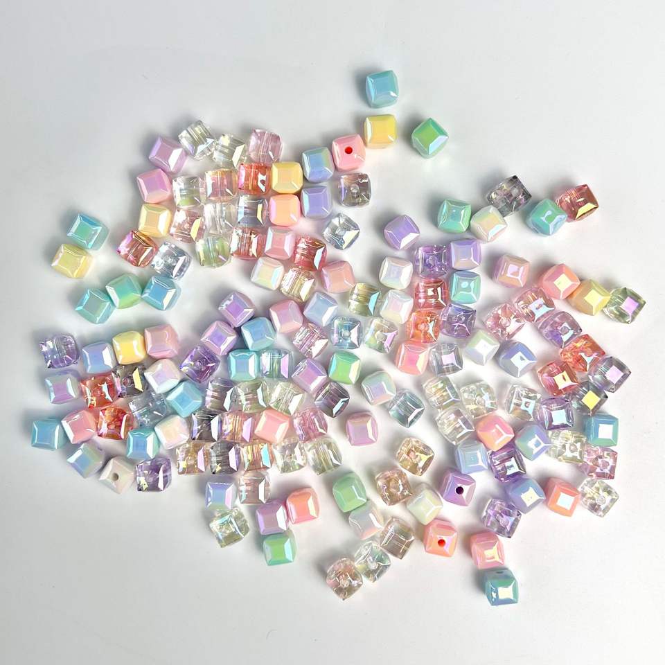 Acrylic Loose Beads 8mm Cute Cube Transparency UV Plated Prismatic Acrylic Plated Square Beads DIY Accessories