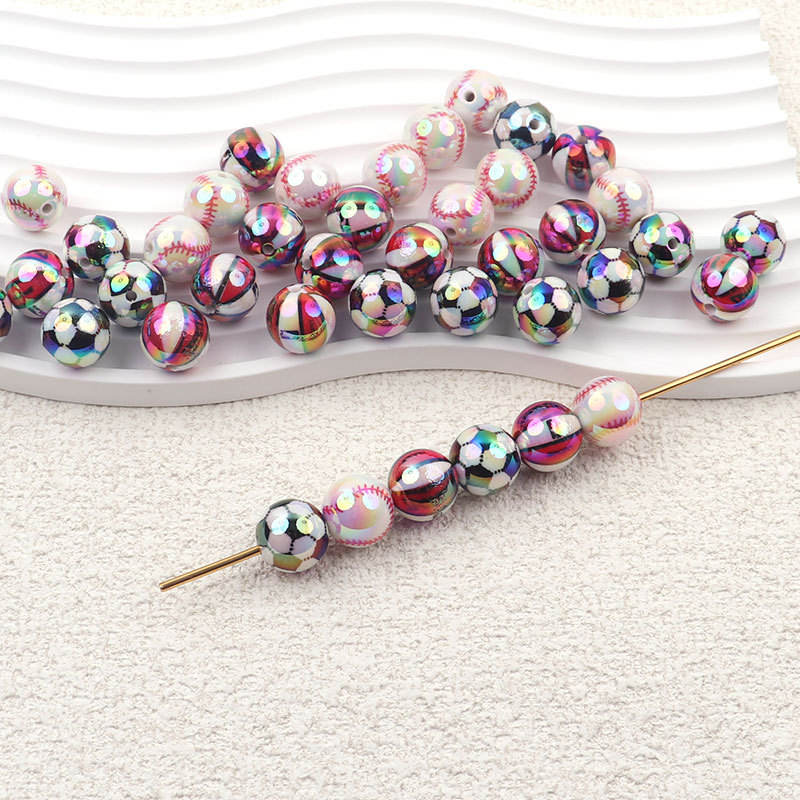 Acrylic Loose Beads Wholesale 16MM UV Platedfootball Acrylic Loose Beads for Jewelry Making