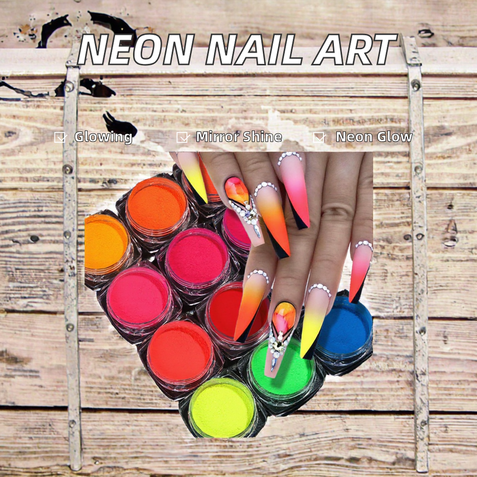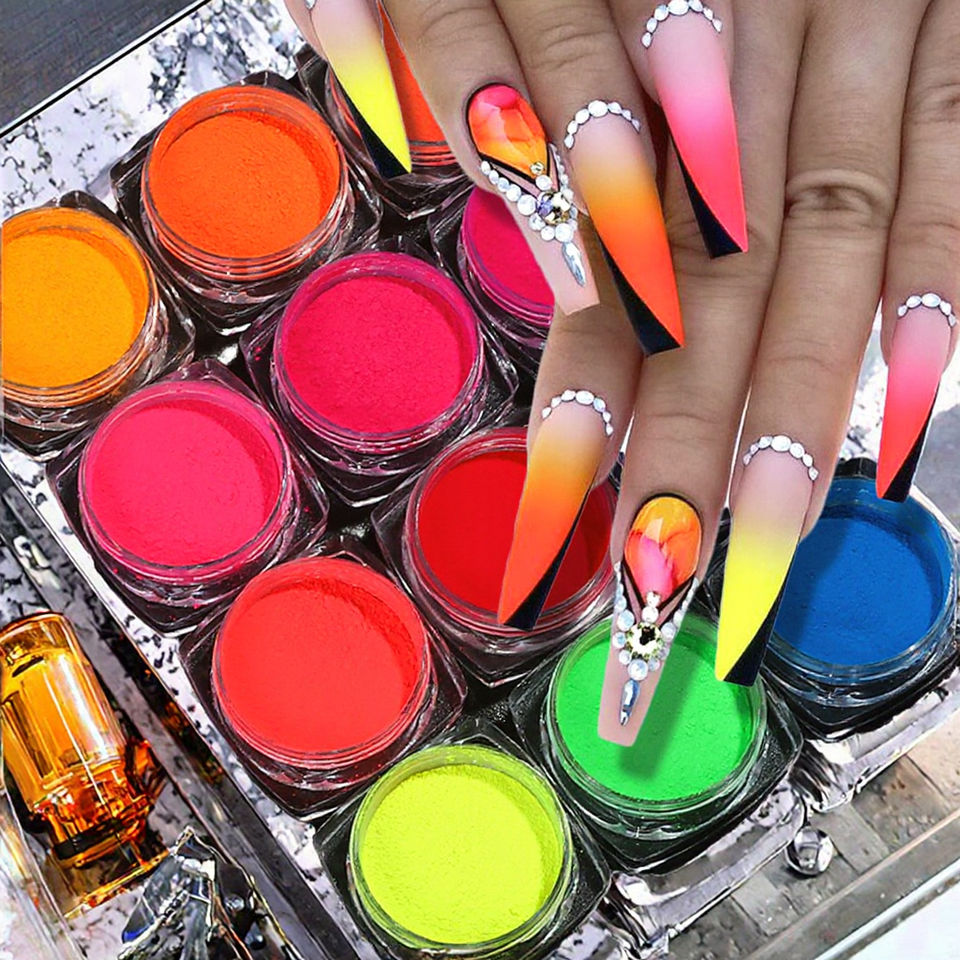 Acrylic Nail Powder Neon Nail Art Set UV Effect Pigment 9 Colors Fluorescent in Diamond Shape Packaging