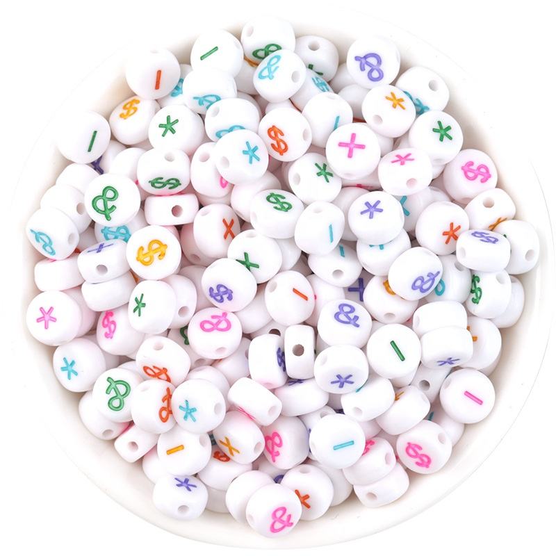 Acrylic Pattern Beads Flat Round Background Black Symbol Loose Beads for Diy Bracelet Beaded Jewelry Making