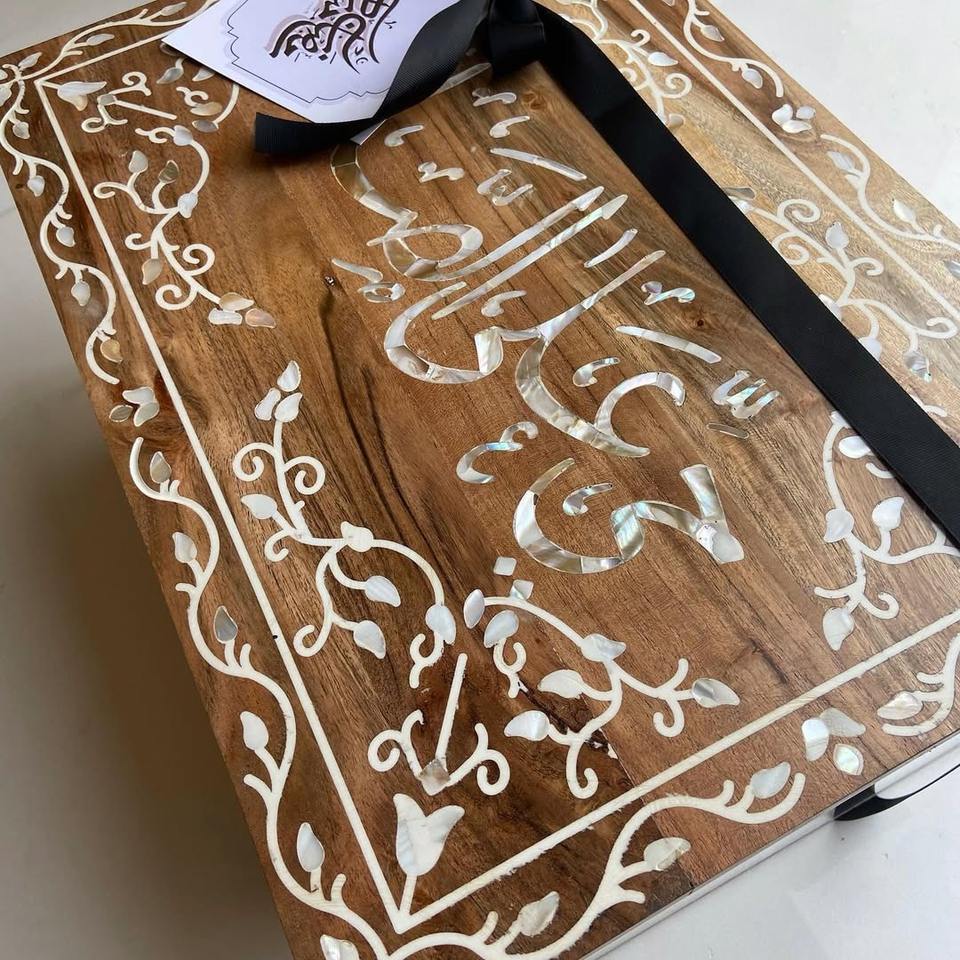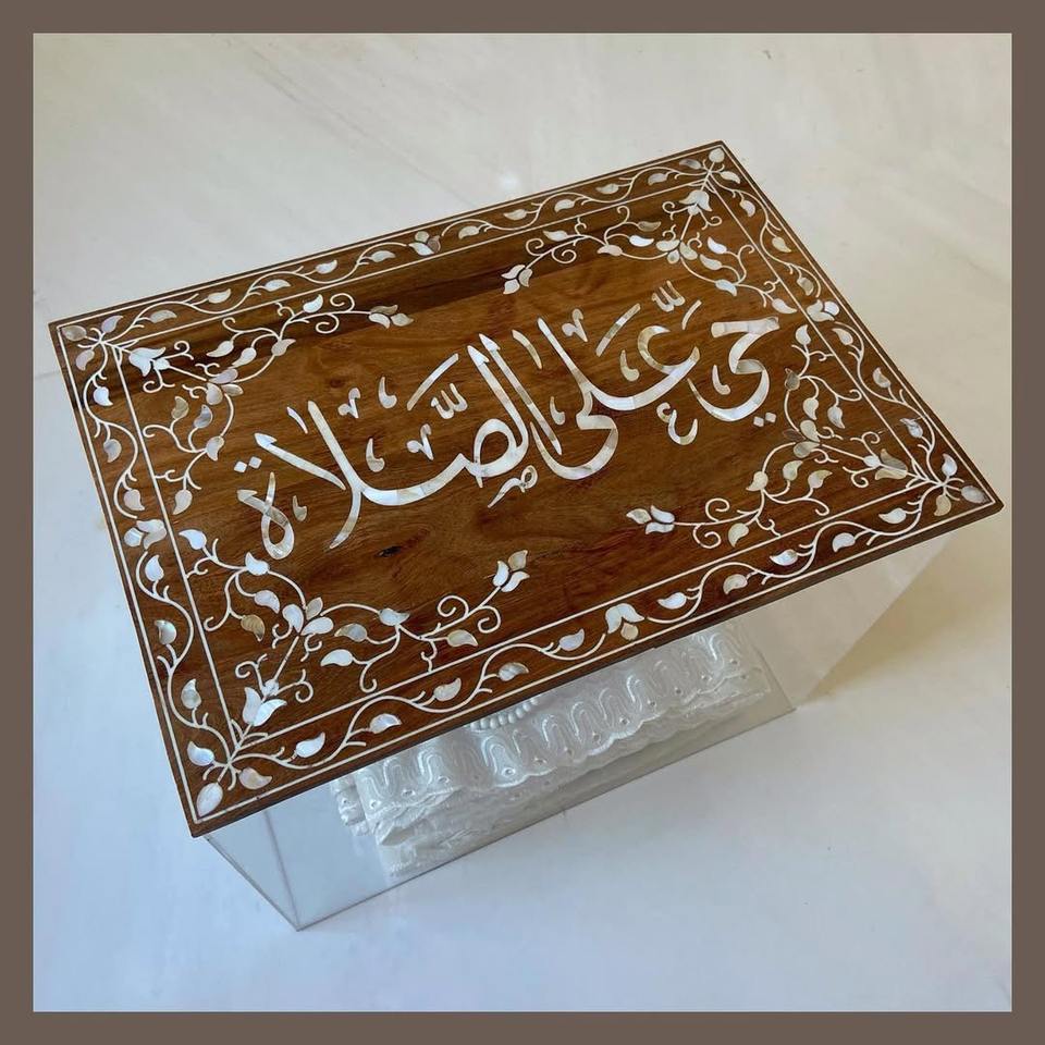Acrylic Square Jar Natural White MOP Lid Islamic Mashrabiya Design Ramadan Wood Lacquer Technics Classic Style 0-1L Storage