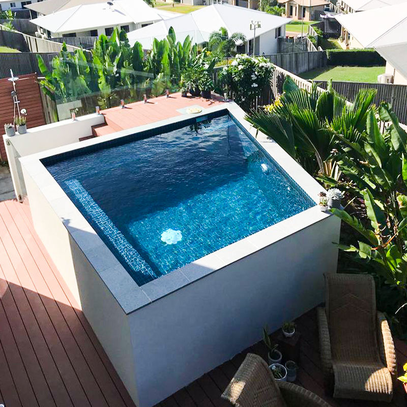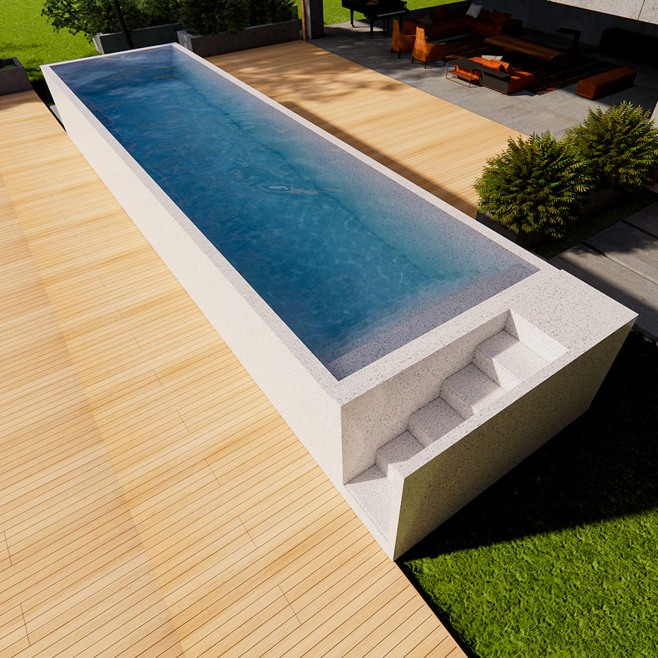 Acrylic Swim Spa Pool for Outdoor Family Use with WPC Wooden Construction and Fiberglass Ground Model JZX-001