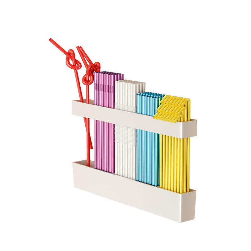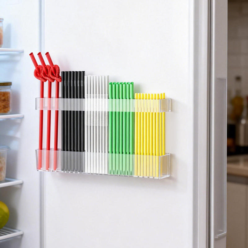 Acrylic Wall Mounted Straw Storage Rack Rectangle Transparent White Easy Cleaning Kitchenware Cabinet Organizer